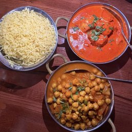 It's hard not to love the rich, thick creamy spinach. Saag(spinach) is a traditional north Indian dish. Chickpeas cooked with chopped spinach, garlic, ginger, onion, tomato and whipped cream delicately added. It is gluten free and can be made vegan upon request.