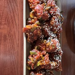 Slices of Mushrooms tossed in hot chili sauce with all colors of bell peppers; giving it a colorful look as well as a subtle hint of sweetness. Regardless of what is weather this can be enjoyed anytime. It is gluten free and can be made vegan upon request.