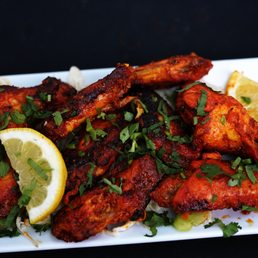 Spicy tandoori chicken wings that are grilled in the tandoor oven to perfection with yogurt, lemon juice, ginger, garlic, garam masala, red chili powder and turmeric. (Please allow extra time to cook.)