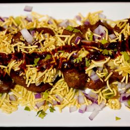 Crispy wafers served with yogurt, boiled potatoes, and spicy chutney and popular traditional street food from the India. It can't be made Gluten free.